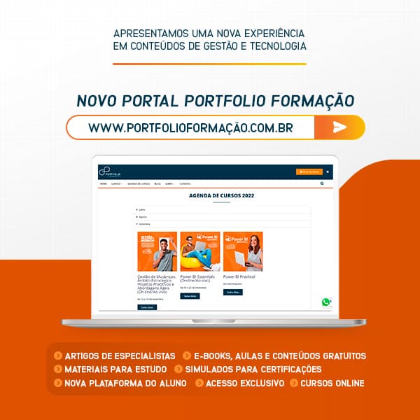A Portfolio Formação promove conhecimento de alto nível nas áreas de gestão e tecnologia, para o aprimoramento da sua carreira, com foco em exercícios práticos e estudos de casos.